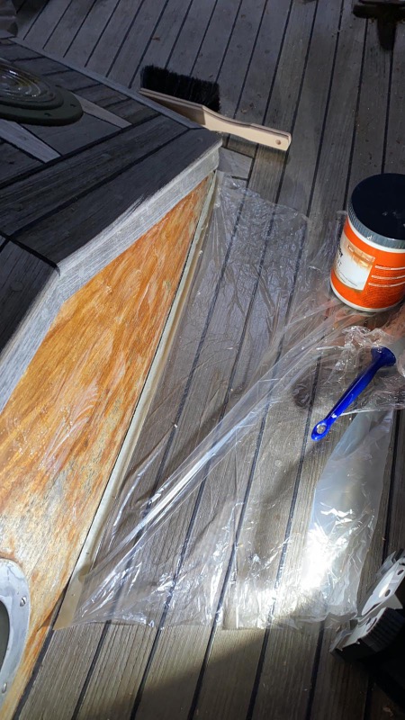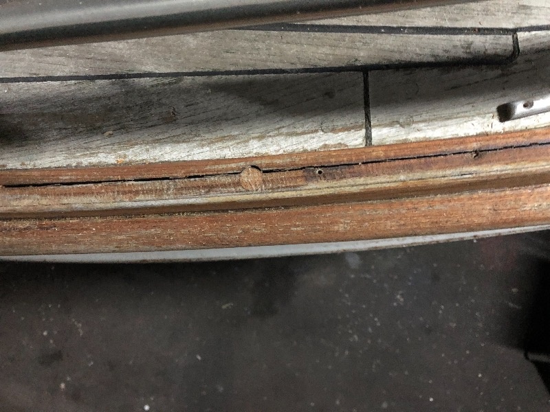 Wij zijn de nieuwe eigenaars van de boot van Willem en Marjan Bijlsma en redelijk onervaren. Wij zijn bezig de boot flink onder handen te nemen. Rondom de romp aan de dekzijde is teakhout opgebouwd uit drie delen. Deze delen zijn gedeeltelijk geweken, zie bijlage. Wat te doen? Bv opvullen met filler of lijmen muv lijm en klemmen?