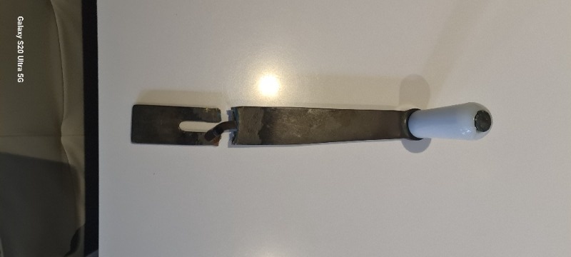 Nu wil het helaas dat deze lierhendel gebroken is. Zie foto 1.